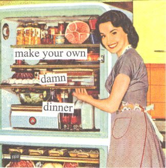 Studio : PPD Publisher : PPD Product Description Anne Taintor is a great artist who has a retro theme but modern, funny, witty and funky napkins. Caption reads: Make your own damn dinner. Napkins are a fun and retro way to add a little special something to any cocktail or beverage. 20 count per package. 3 ply paper beverage/cocktail napkins 5' x 5' when folded (10' x 10' when unfolded) 0