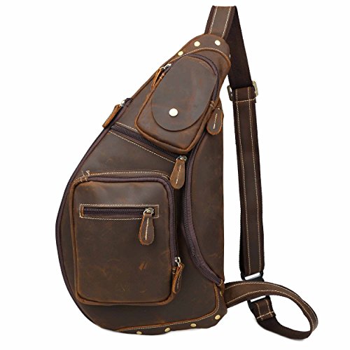 -. Title : Men's Chest Pack Crossbody Bag Vintage Leather Shoulder Sling Bag Rucksack