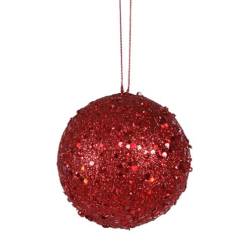 Vickerman Fancy Red Hot Holographic Glitter Drenched Christmas Ball Ornament, 4"