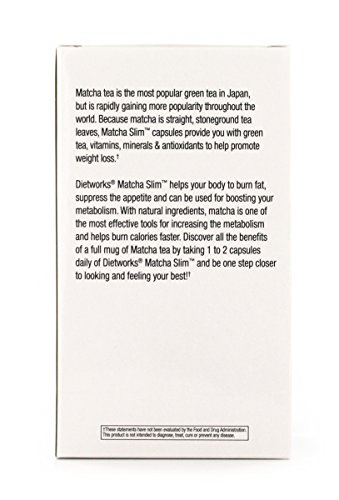 ReleaseDate : 2017-11-20 Studio : WINDMILL HEALTH PRODUCTS Publisher : WINDMILL HEALTH PRODUCTS Binding : Health and Beauty Product Description DietWorks MatchaSlim contains 450 mg of a proprietary tea blend per serving, which includes matcha tea. Matcha literally means "powdered tea" and is an integral part of the tea ceremony in Japan.?Matcha tea is used by many people for meditation and gives a feeling of well-being. Just one cup of matcha tea has as?many antioxidants as 10 cups of green tea. Matcha tea also has 6.2x more antioxidants than goji berries, 7x more than chocolate and 17x more?than blueberries. Matcha provides vitamins A, B-complex, C, E and K; trace?minerals; antioxidants and amino acids.?It may support weight loss and heart health, as well as promote energy. DietWorks MatchaSlim is a convenient way to enjoy these health benefits any time. Along with a proper diet and exercise, DietWorks supplements may help jump-start a diet and promote weight management. 0
