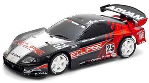 『リアルドライブシリーズ』のGT選手権第2戦準優勝に輝いた『ECLIPSE ADVAN スープラ』モデル。前後進、右左折、ストップが可能なフルアクションラジオコントロールカー。送信機のレバー操作で、スピードの調節も可能。洗練されたブランド・イメージにマッチした新カラーリングで、細部のデザインまで忠実に再現。また、ウェーブコーダーを搭載しており、最大6台まで同時走行が可能。