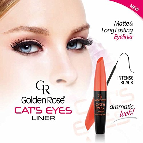 -. Binding : Misc. -. Brand : Golden Rose -. EAN : 8691190069551 -. Feature : • Creates Precise Contour around Your Lash Lines to Give You the Perfect Cat's Eye Look. / • Intense Black Color Gives Your Eyes Dramatic Beauty with Just One Coat of Liner. / • Fine Pointed Soft Brush Provides Easy Application with Accurate Results, Even for Ultra-Thin Lines. / • Quick-Drying Matte Finish Stays in Place for Hours without Smudging or Smearing, Even if You are Perspiring. / • Paraben Free, Dermatologically Tested and No Animal Testing so You are Getting a Product that is Safe for Your Eyes and Skin without Cruelty to Animals. -. Label : Golden Rose -. Manufacturer : Golden Rose -. NumberOfItems : 1 -. PackageQuantity : 1 -. ProductGroup : Beauty -. ProductTypeName : BEAUTY -. Publisher : Golden Rose -. Studio : Golden Rose -. Title : Golden Rose Cat's Eyes Black Matte Liquid Eyeliner
