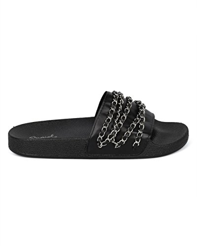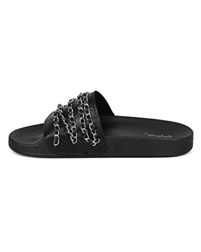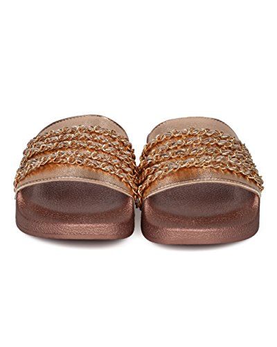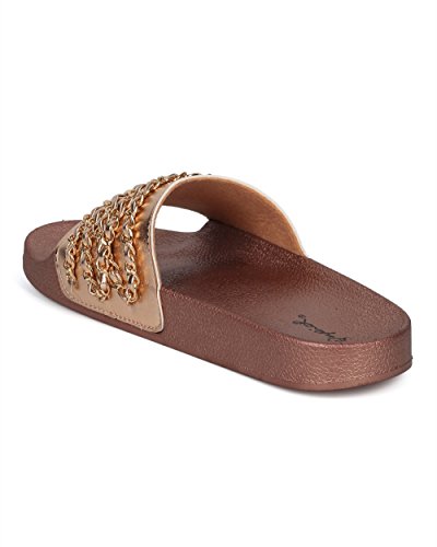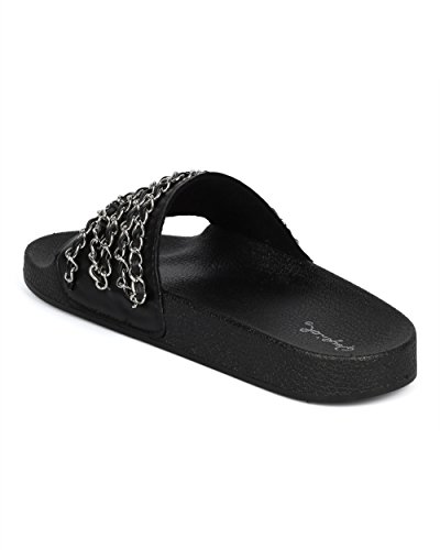 Women Chain Embellished Slide - Open Toe Molded Footbed Sandal - Casual Versatile Trendy Fashio...