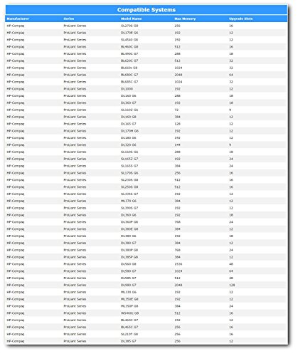 - Designed For HP-Compaq ProLiant Series Models:SL270S G8 DL170E G6 SL4540 G8 BL460C G8 BL490C G7 BL620C G7 BL660c G8 BL680C G7 BL685C G7 DL1000 DL160 G6 DL360 G7 SL160Z G6 DL160 G8 DL165 G7 DL170H G6 DL180 G6 DL320 G6 SL160S G6 SL165Z G7 SL165S G7 SL170S G6 SL230S G8 SL250S G8 SL335S G7 ML370 G6 SL390S G7 DL360 G6 DL360P G8 DL380E G8 DL380 G6 DL380 G7 DL380P G8 DL385P G8 DL560 G8 DL580 G7 DL585 G7 DL980 G7 ML330 G6 ML350E G8 ML350P G8 WS460c G8 BL460C G7 BL465C G7 SL210T G8 DL385 G7