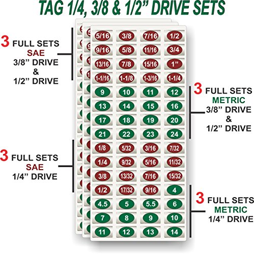 Steellabels - 3 for $10 Deal - Chrome Socket Labels - tough chrome foil tool decals, great for mechanics & homeowners