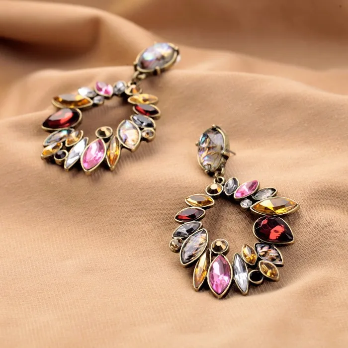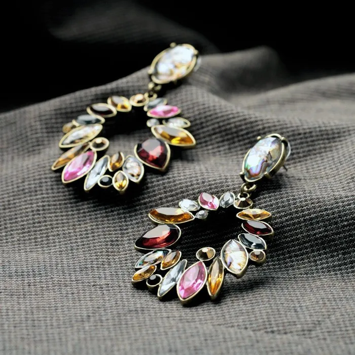 Production name ::Elegant Colorful Rhinestone Big Round Earrings for Women