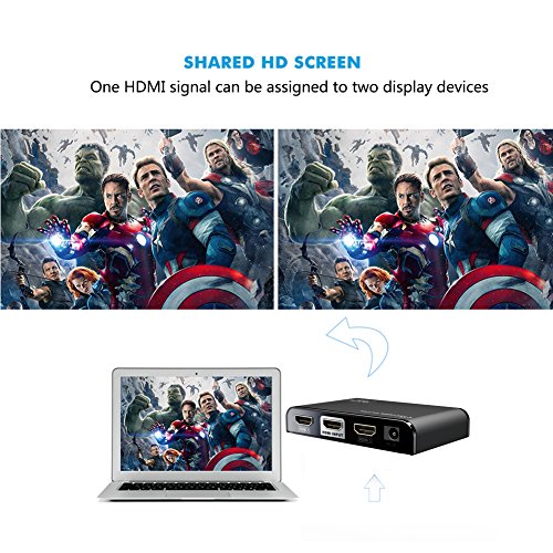 AGPtEK HDMI Splitter 1 in 2 out V2.0 4K Full HD 3D 1080P HDR 1x2 Adapter Signal Distributor Hub for STB,DVD,Media Player,Laptop,D-VHS and More