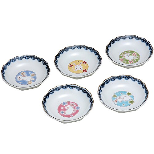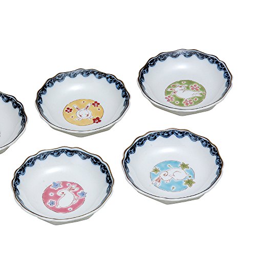 원본상품명: 和食器 九谷? 小皿5枚セット 丸紋うさぎ AK5-0066