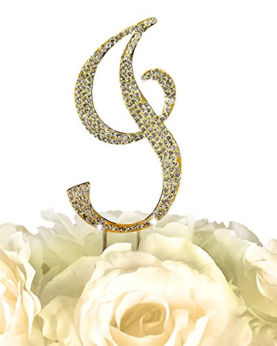 Crystal Rhinestone Covered Gold Monogram Wedding Cake Topper Letter I