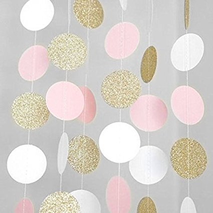 Tissue pompom for girl, baby pink cream gold circle dot paper garland kit. A mixed bright color set that will light your party/wedding/baby shower, for your pink and gold first birthday decorations, baby shower decorations for girl. Enjoy and have fun!