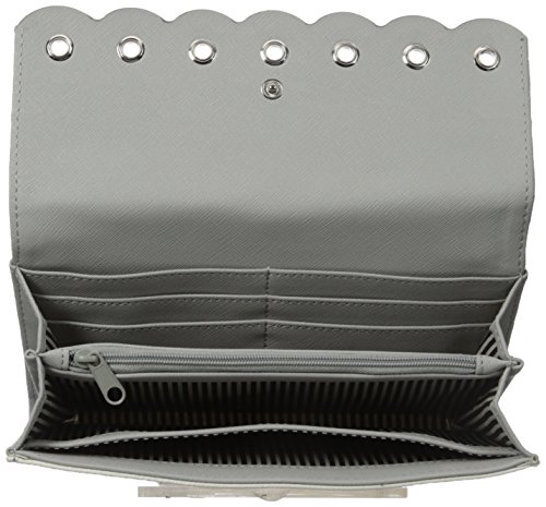 Folding faux-leather wallet featuring scalloped flap with studs and grommets