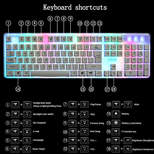 -. Title : E-3lue EKM725 Waterproof Colorful Backlit Professional Gaming Keyboard with 22 Non-conflict Keys, 8 Switchable Backlight Colors (White)