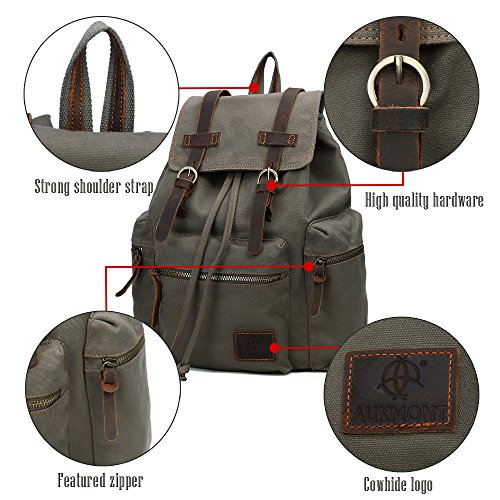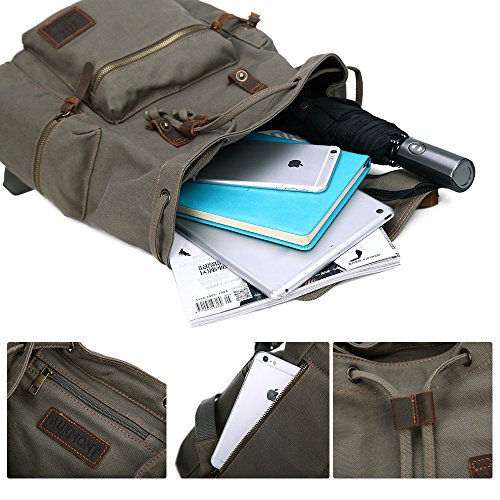 -. Title : Vintage Canvas Backpack Outdoor Hiking Travel Rucksack 19L