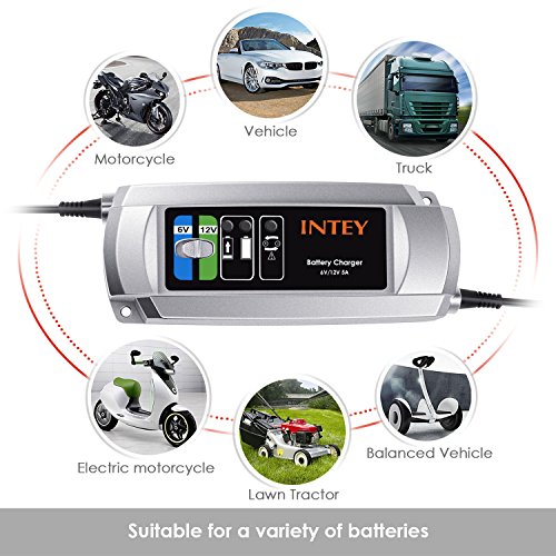 INTEY Car Battery Charger, 6v/12v 5A Portable Automotive Battery Charger for Motorcycle ATV, Truck