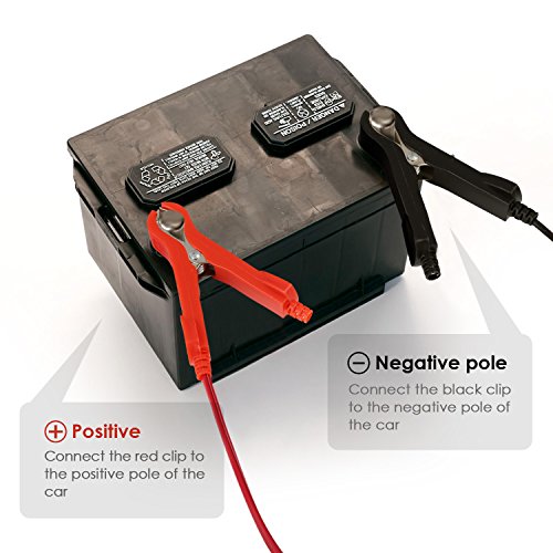 【LED indicator and Smart Charging Steps】A Intuitive LED Indicator of the trickle truck battery charger providing visual state-of-charge feedback and diagnostic information. And this battery charger for car has 3 charging steps: constant current, constant voltage and floating charging to protect your battery.