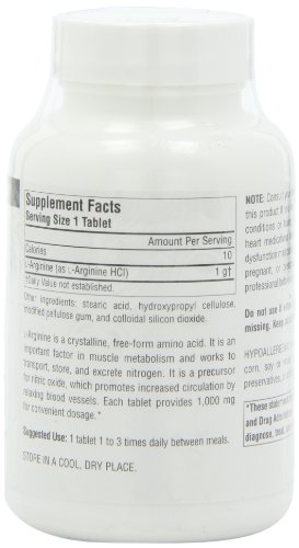 -. Title : Source Naturals L-Arginine Free-Form 1000 mg, Promotes Increased Circulation, 50 Tablets