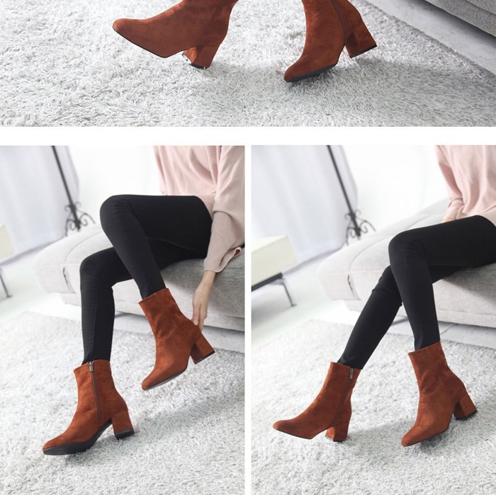 商品名:ショートブーツ レディース チャンキーヒール 太ヒール スエード調 2017 秋冬 ファッション 靴 婦人靴