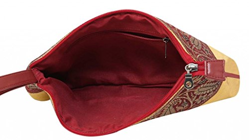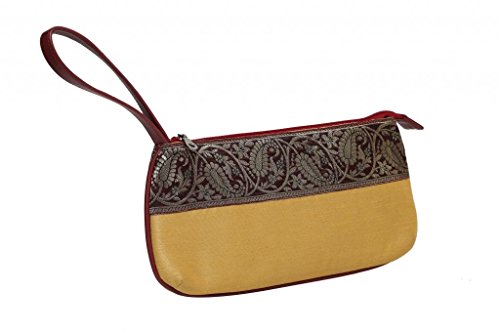 -. Feature : Type : clutch / Colour : yellow / Material : silk / Closure : zip / No. Of compartments : 1 , no. Of pockets : 1