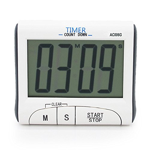 -. Feature : FEATURES: Big LCD Display, Time (12/24 hrs), Count Up/Count Down / 1-1/4 inch Jumbo display; No Squinting Or Glasses Needed! Read It From Across The Room Easily / Loud alarm no More Overcooked Food! Loud Enough To Be Heard Easily In Adjacent Rooms / Contains stand, and magnet giving you 2 ways to hold the timer in place.; Uses 1 AAA Battery, Which Are Cheap & Easy To Find. Usually Lasts A Year Or More! / Counts down from up to 99 Minutes, 59 seconds.