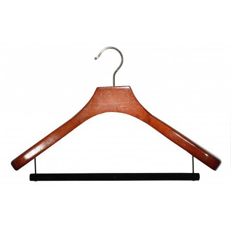 -. Title : Deluxe Wooden Suit Hanger w/Velvet Bar, Walnut Finish with Chrome Hardware, Box of 6