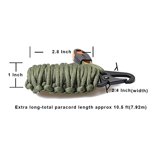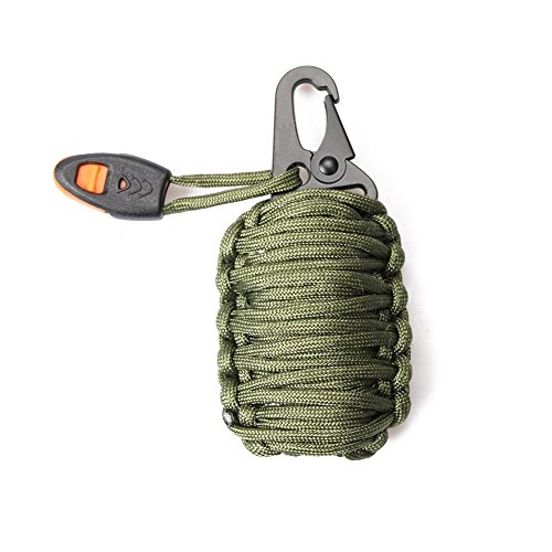 - MULTIPLE OUTDOOR USES:All these accessories are wrapped in 26 feet of survival cord. The survival grenade consist of one Braided Fishing Line (break strength 12kg), Paracord features heavy duty seven Normal Strands that's 550lb and very strong and can be a useful survival tool during emergencies. The cords are great for making fire, getting food or mounting different things such as a tent tarp.