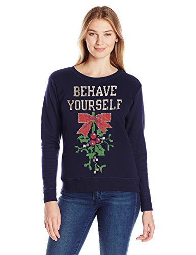 Hanes Women's Ugly Christmas Sweatshirt, Hanes Navy Behave Yourself, S