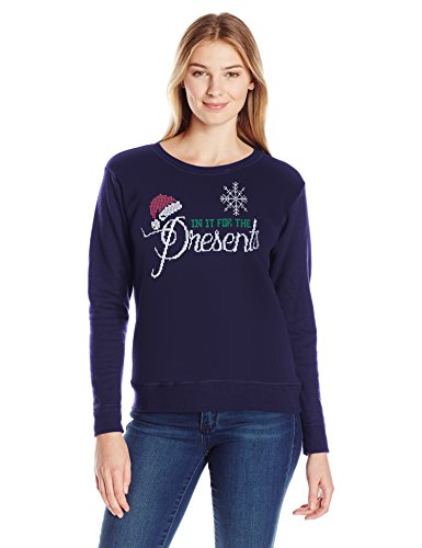 Hanes Women's Ugly Christmas Sweatshirt, Hanes Navy in It for the Presents, M