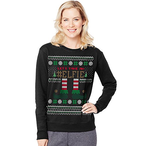 Hanes Women's Ugly Christmas Sweatshirt, Black Elphie, M