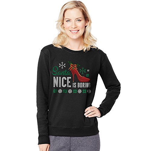 Hanes Women's Ugly Christmas Sweatshirt, Black/Nice Is Boring, Medium