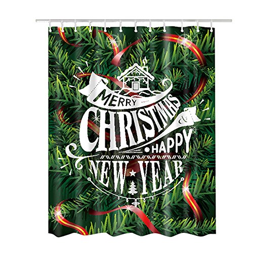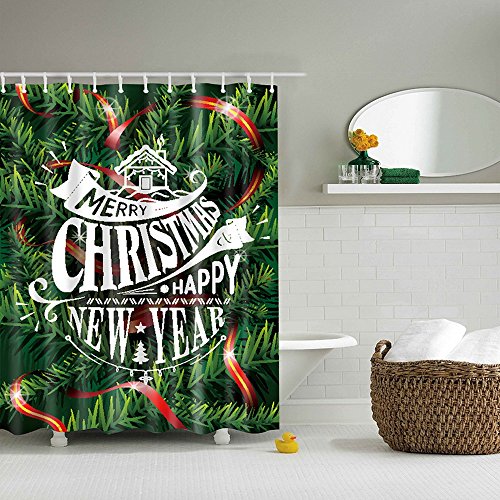 Christmas Shower Curtain Bathroom Decoration Polyester Fabric Shower Curtains for Xmas Merry Christmas Tree 71 x 71 Inch