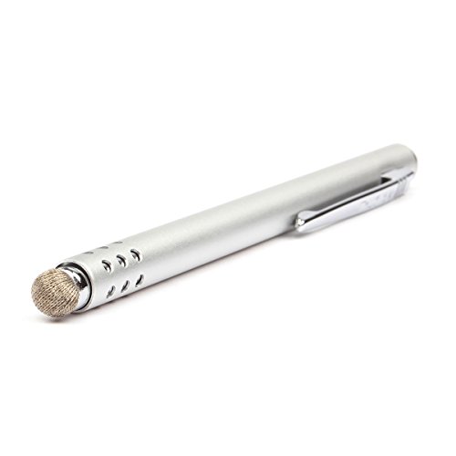 Lynktec TruGlide Mesh Fiber Stylus with Microfiber Knit Tip for All Capacitive Touch Screen Tablets, iPad, and Smartphone (Silver with Silver Clip)