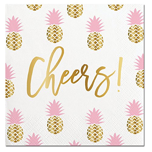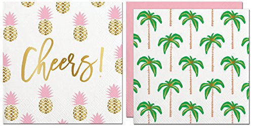 Cheers Pineapple Printed Napkins & Palm Trees Printed Napkins ( Gold Foil Print, 2 Packs of 20)