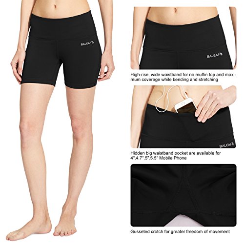 Title : Baleaf Women's High Waist Yoga Shorts Tummy Control Inner Pocket Black Size XS