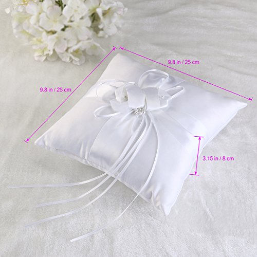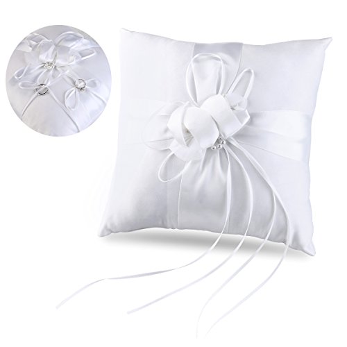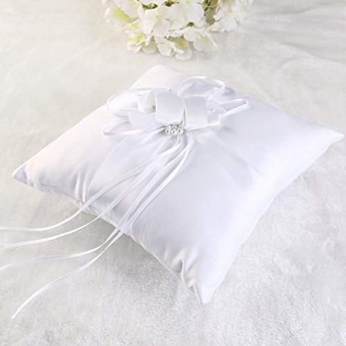 Features - Brand: TINKSKY. - Material: durable soft satin, ribbon and faux pearl. - Pillow Size: about 25 * 25cm/ 9.84 * 9.84 inch. - 100% brand new and high quality Wedding Ceramony Pocket Ring Pillow Cushion Bearer with Ribbons. - Pure white ring pillow decorated with satin ribbons and flower bud buckle to tie the ring. - Come with a strap at back for ring bearer /page boy to hold. - Compact size and light weight, for easy to store and carry. - Perfect for wedding ceremony.