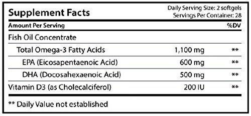 • Omega Pure Plus- 200 IU Vitamin D3 1100 mg of Omega-3 Fatty Acids 600 mg of EPA 500 mg of DHA per serving (2 caps). Get 3-4 times more of the important Omega-3s compared to many other brands. A famous TV expert calls Omega 3 the most important single supplement. With this product, you will meet his recommendation of 600 mg EPA per day - with a single serving!