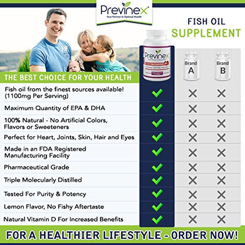 • THIRD PARTY TESTED - For Product Purity, Projected Efficacy, Ingredient Safety, Nutritional Value, and Label Accuracy. Quality you can trust! Fish oil is an ideal delivery medium for vitamin D given that vitamin D is fat-soluble. Additionally studies show that combining omega 3s with vitamin D provides a number of health benefits versus taking the two as stand-alone products. Pharmaceutical Grade. 4 week supply. USA Made. Previnex uses Peruvian anchovettas Engrualis Ringens to provide omega