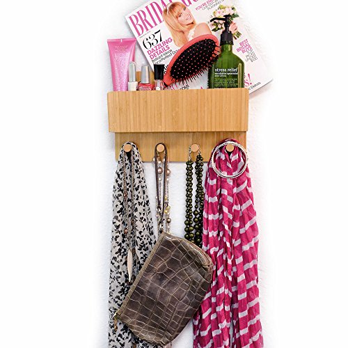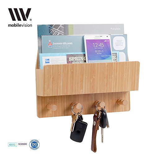Keep your foyers, entryways, and hallways clear of clutter. Never lose your keys, important letters, or tech gadgets with the MobileVision Bamboo Wall Mount and Key Holder Organizer.