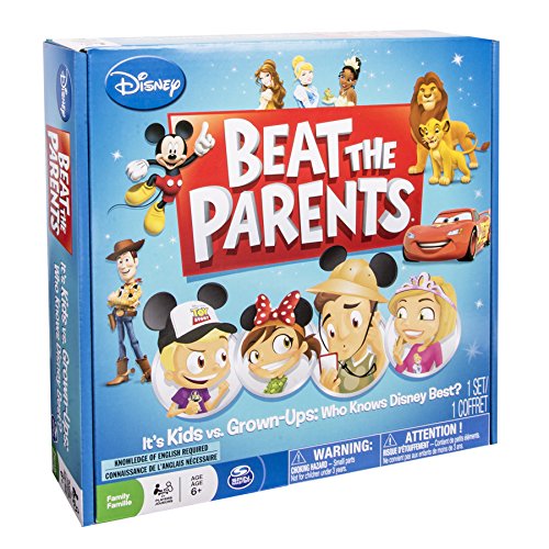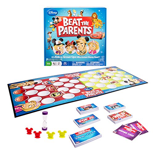 -. Feature : Disney Beat the Parents is a Kids vs. Adults head-to-head challenge on everything Disney! / There are multiple question card categories for hours and hours of fun filled Disney Trivia! / The first team to get both mover pieces across the board wins the game! / Disney Beat the Parents is a fun filled family game for 2 or more players ages 8+. / Includes: 160 Question Cards, 40 Wild Cards, 2 Answer Cards, 1 Sand Timer, 1 Game Board, 4 Movers, 1 Instruction Guide