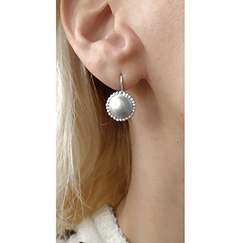 -. Title : 14 mm Round everyday feminine silver drop earrings casual & modern design