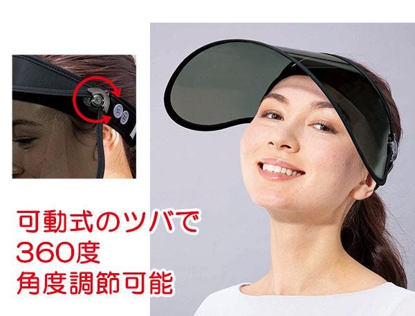| UVカット率99%以上!偏光フィルム採用で目にやさしいサンバイザー。使用しない時は、くるっと丸めて収納袋に。 |