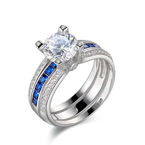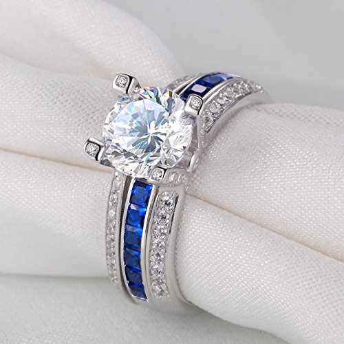 - Title : Newshe Jewellery Round Blue Cz 925 Sterling Silver Wedding Band Engagement Ring Sets Size 7