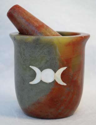 -. Title : Pearl Inlain Triple Moon Soapstone Mortar and Pestle Set