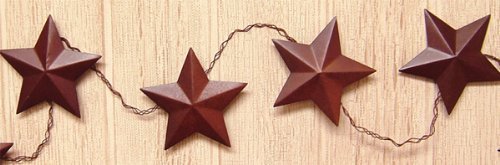 - Use Rusty Star Garlands as is, or add to floral garlands or light strands for a rustic touch. 2-1/2" dimensional stars strung on a 3 foot, twisted wire strand, all with rusty painted finish. Approximately 7 stars per garland.