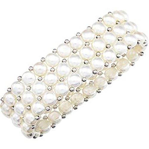 -. Feature : Sterling Silver / Beautiful Design / 6.00 MM 3 ROW WHITE BUTTON PEARL BRACELET