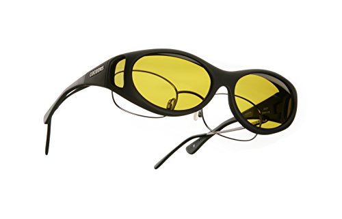 Designed to fit comfortably and securely over 99.5% of all prescription eyewear frames. Extra Large Fits over prescription frames measuring less than 5 1/2"w 2"h. Six sizes to choose from. 360° of Protection: It is important that a sunglass provides protection from all angles. Cocoons patented frame designs block damaging UV light and glare from all angles, completely isolating the eyes in a cocoon of filtered light. Each pair includes a custom designed protective neoprene case, large lens cloth and a limited lifetime frame warranty.Feature