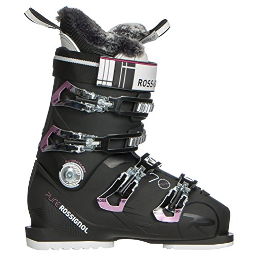 Studio : Rossignol Publisher : Rossignol Binding : Misc. Product Description The Pure Elite 70 from Rossignol makes a great ski boot for the intermediate to advanced skier who has a narrow forefoot and narrow leg shape. Rossignol's Sensor Blade Technology has a unique shell design that lowers the total weight of the boot while increasing the rigidity and energy transmission towards your skis when you feel like ramping up the speed. Marino Wool Insulation in the liner keeps your toes extra warm when you are out skiing on cold days. An Easy Entry Insert has a softer plastic inserted across the top of the foot that allows your foot to slide easily in and out of the shell. If you have a narrow foot and leg shape and want a medium flexing shell the Rossignol Pure Elite 70 is a great option for you. Actual Flex: 70, Cuff Alignment: Single, Warranty: One Year, Ski Boot Width: Narrow (95-99mm), Flex: Medium, Used: No, Ski/Walk: No, Forefoot Width: 98mm, Flex Adjustment: Yes, Buckle Count: 4, Category: Downhill, Ski Gear Intended Use: All Mountain, Instep Height: Standard, Calf Volume: Standard, Skill Range: Intermediate - Advanced, Model Year: 2018, Product ID: 485393, Shipping Restriction: This item is not available for shipment outside of the United States., Model Number: RBG2240.235, GTIN: 3607682175605 0