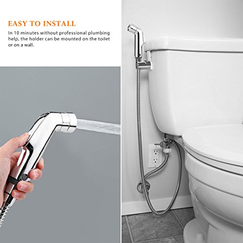 - EASY INSTALLATION AND WIDE APPLICATIONS. Easy to install in 10 minutes without professional plumbing help, the holder can be mounted on the toilet or on a wall. The 1.2m hose section is long enough, so it can get the water to achieve quick baby showers, pet washing, cloth diaper spray, cleaning washing machine, kitchen sinks, the toilet seats, bathroom floor, and so many more!