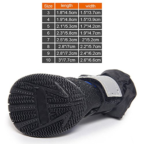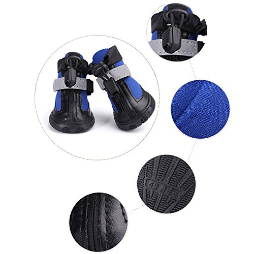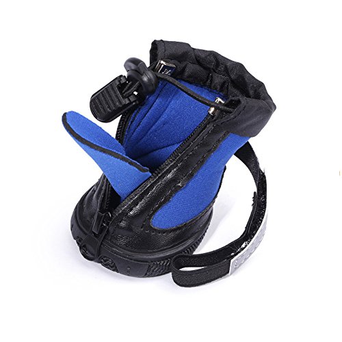 -. Feature : Superior Quality- Featured with PU and neoprene, has great waterproof performance, soft, flexible and comfortable. / Zipper Drawstring- Much more convenient to put on and take off for your pet, drop-proof and loose-proof, also works well for resisting water into the shoes. / Non-slip Sole- Perfect for outdoor activities, such as running, hiking, camping, etc. / Exquisite Workmanship- The neat and sturdy stitching makes sure that the thread is hard to loose, providing extra durable wear experience. / Reflective Straps- Ensure your pet's safety especially when it plays outside at night.