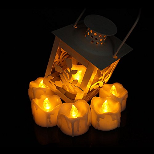 Advocator Wax Dripped Battery Operated Candle Unscented Small Led Flameless Flickering Candles with Timer - 6hr On-18 hr Off Amber Yellow Flicker LED Tea Lights for Christmas Wedding Party– 12pcs