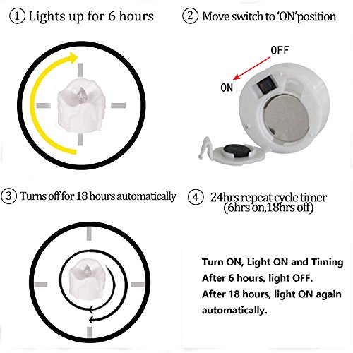2).GREAT TIMER FUNCTION! Turn it on, it lights up for 6 hours and then turns off for 18 hours in 24 hour cycle, save the trouble to turn it on and off every day, can light up 12 days